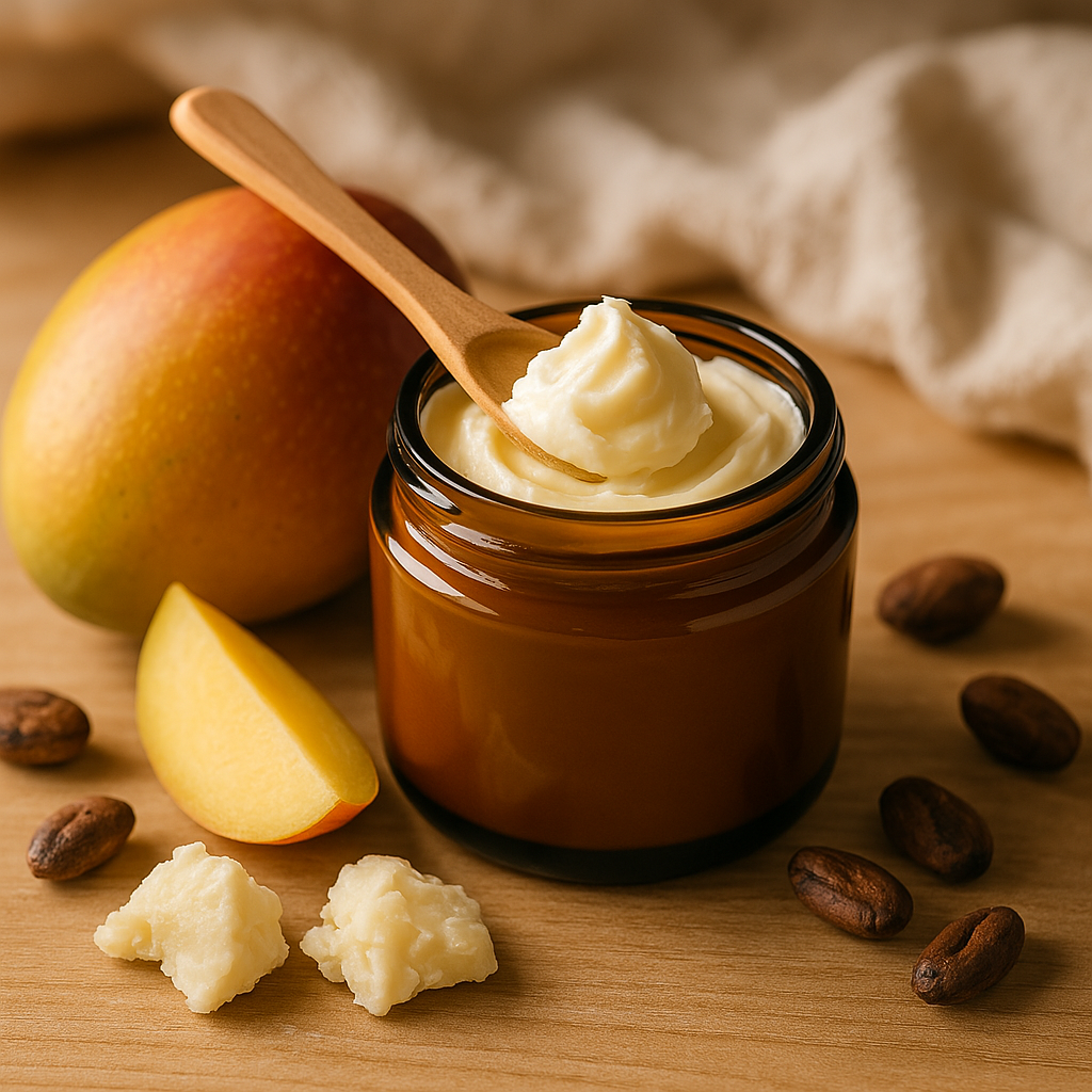 Alle Öle und Butter im Wasserbad langsam schmelzen und gut verrühren. In einen sauberen Tiegel füllen und bei Zimmertemperatur fest werden lassen.